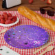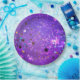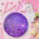 Fundo de faturas violetas com estrelas douradas e azuis. Fundo com estrelas.
