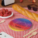 este design apresenta lindas cores do tema do pôr do sol, como azul, índigo, roxo, magenta, vermelha, laranja, amarela, com uma citação inspiradora e motivacional "quando você não consegue encontrar o sol seja o sol" incluso na elegante borda de ouro quadrada.