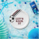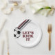 Vamos Chute! Placas de Aniversário do Futebol com Maroon e listras pretas e bola de futebol.