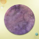 Lindo pratos de papel com ilustração de uma galáxia aquosa em cores roxas. Note que esta não é uma foto de uma galáxia real, mas uma impressão de uma pintura aquosa. Ilustrada e projetada por Patricia Alvarez.