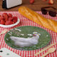 Estas placas de papel apresentam um frango branco bonito, posando sobre um cogumelo de madeira com margaridas brancas ao fundo. Claro que agradeço a qualquer amante de frango!