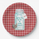 País ou placa temático ocidental do partido de Bunco. Guingão vermelho da verificação com uma galinha do "primavera" e frasco de colocação em latas do vintage com Tag. O monograma ou personaliza com suas citações favoritas, nome de grupo ou o outro texto. "Não role os dados, nós não são divertimento cómico de Bunco de nenhuma galinha de primavera".