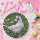 Estas placas de papel caracterizam uma galinha branca bonito que pasta entre um campo das margaridas. O texto pode ser eliminado ou mudado para caber sua ocasião.