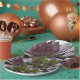 Esta placa de papel apresenta as galinhas e os pintinhos de uma variedade de suculentos.
