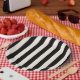 Prato De Papel Gamas Verticais, Pretas E Brancos, Com Grelha