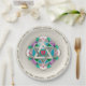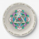 O encantador novo design nestas placas de papel Shabbos é de uma pintura digital original de Leslie Sigal Javorek. "Shabbot Shalom!" circula a borda, ponto focal é uma mandala Art Nouveau com uma estrela dentro de coração de David cercada por flores altamente estilizadas. O uso sutil de sombreamento dá a ilusão de um profundo recipiente de cerâmica jogado à mão, mas Surpresa!