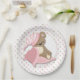Estas adoráveis placas de chá de fraldas apresentam um ursinho de pelúcia marrom, bonito e sonolento, com boné e cobertores cor-de-rosa e listrados brancos. A imagem é emoldurada em uma borda pokadot rosa e marrom. Certifique-se de ver os produtos de chá de fraldas correspondentes em nossa loja.