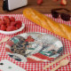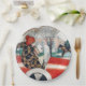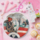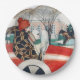 Prato De Papel Garota e Cachorro num Automóvel Vermelho
