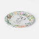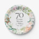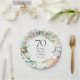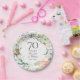 Com uma delicada grinalda de verde floral em aquarela, este prato de papel para aniversário de casamento de 70 anos botânico elegante pode ser personalizado com as informações do seu aniversário especial em texto elegante. Projetado por Thisisnotme©