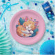 Quem ama gatos ficará encantado com esse gatinho de desenho animado. O gato que dorme numa cama de folhagem e flores é colorido em pastéis brilhantes. A cor de fundo rosa pode ser alterada para qualquer cor desejada na ferramenta design do Zazzle. Adicione qualquer texto dentro da ferramenta também. Muito bonito para qualquer evento, mas especialmente para a festa de uma menina.