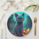 Prato De Papel Gato Azul Russo Halloween Com Pumpkins Assustado