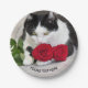 Prato De Papel Gato bonito com a rosa vermelha