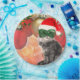 Prato De Papel Gato de Natal no fundo de uma bola de Natal