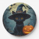 Prato De Papel Gato Negro Adorável Vestindo Chapéu de Bruxa