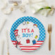 É um menino! Celebre seu Chá de fraldas com esse Gato Colorido nas placas de papel "É um Menino" do Chapéu.