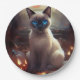 Prato De Papel Gato Siamês do Halloween Com Pumpkins Assustado