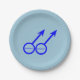 Este incrível prato de festas de papel foi projetado para gay. Apresenta dois símbolos masculinos azuis de pé lado a lado. O fundo é azul e há dentro de texto azul personalizável para cada um dos símbolos para colocar nomes.