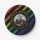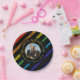 These personalized round paper plates feature the grooms' names, wedding date, and a photo of your choice set in an elegant gold medallion. Use your engagement shoot, a favourite couple photo, or any image that tells your story. Complete the table setting with matching paper cups and napkins from the Gay Men Wedding Elegant Rainbow collection — available in this store.