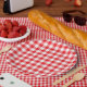 Prato De Papel Ginga Vermelho Vívido no Campo