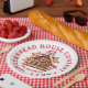 Prato De Papel Gingerbird House Partido Branco e Vermelho