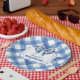 Prato De Papel Gingham Azul e Arco