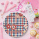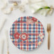 Prato De Papel Gingham Patriótico com Acentos Florais | Vermelho