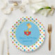 Esta placa do partido caracteriza um fundo azul cercado por um alinhador longitudinal de repetição de estrelas vermelhas, azuis, amarelas e verdes. Um girafa bonito em um carro de trem vermelho senta-se no meio da placa.
