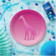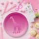 Prato De Papel Girafa Geométrica Moderna, Fuchsia e Rosas claro