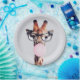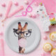 Prato De Papel Girafa Vestindo Óculos soprando pastilha elástica