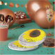 Guardanapo de papel rústico com textura de madeira, grande girassol e tipografia moderna e personalizável.