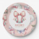Prato De Papel Girl Birthday Personalized Pink Baseball Bow