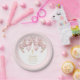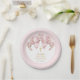 Prato De Papel Girl First Communion Pink Bow Floral & Gold Cross