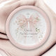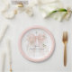 Pretty and feminine, this custom paper plate is designed to celebrate a girl's First Holy Communion. The design features a pastel pink watercolor bow with pink flowers with a soft pastel pink border. A lovely silver cross sits above the bow as a symbol of Christianity. Easy to personalize and prepare for this momentous occasion in the life of your daughter. This paper plate design is available in 2 sizes; shown here in the smaller 7-inch diameter size, they are also available in a larger 9-inch diameter size.