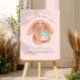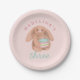 Cute and girly pink plush bunny kids birthday plate has space for you to add your kids name and age. Perfect for a bunny, woodland, or cuddly plushie-inspired girls birthday theme.