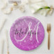 O brilho púrpura da menina e do glam ombre brilha o nome do monograma e a placa de papel inicial. Personalize este prato bonito com o seu nome, monograma ou inicial. Você pode até alterar a cor do texto e o estilo da fonte usando a opção personalizar!