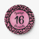 O padrão de impressão elegante rosa-quente e leopardo-negro é sobreposto com folhas fofinhas cor-de-rosa-quente e detalhes doces de 16 ou qualquer ano de festa de aniversário em caracteres quicos. COORDENANDO itens disponíveis em nossa loja.