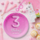 Prato De Papel Girly Pink Glitter Balloon 3rd Birthday