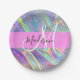 Prato De Papel Girly Rainbow Holographic Nome do Monograma Irides