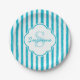 Prato De Papel Girly Turquoise Pains Stripes Monograma e Nome