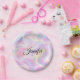 Prato De Papel Girly Vibrant Pastel Holographic Swirl Design