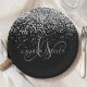 Placa de Papel Elegante De Monograma De Lata Preta Glam. Personalize facilmente este design de placa de papel chic moderna com elegante brilho prateado num fundo preto. O design apresenta seu monograma manuscrito com espirais bonito e seu nome.