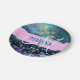 A glitter de ouro aqua-mermaida em goma-de-vidro dispara o nome do monograma e as placas de papel iniciais. Seu nome personalizado e monograma são escritos em um elegante roteiro escrito à mão com um fundo de rosa claro. Você pode alterar a cor do texto, o estilo e o tamanho da fonte usando a opção personalizar.