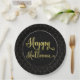 Prato De Papel Glitter Dourado Elegante No Dia das Bruxas Pretas