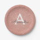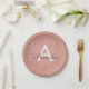 Pratos de festa de aniversário ou despedida de solteira elegantes em glitter rosa dourado falso e brilho. Estes pratos de casamento, chá de noiva ou festa de aniversário podem ser personalizados para incluir o seu inicial e primeiro nome. Por favor, entre em contato com o designer para itens combinando personalizados.