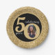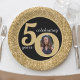 Placa de papel de aniversário feliz, brilhante, preto e dourado, para uma criança de 50 anos. Excelente de design de vidro cintilante para mulheres. Personalize a idade para se adequar à sua ocasião e adicione uma fotografia pessoal do destinatário. Excelente para o cinquentenário ou decoração de festas de aniversário para uma festa de cinquenta anos.