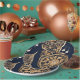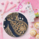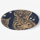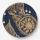 Gold and dark blue is a beautiful AI art that shows golden floral and pearl elements on a dark blue background. They are the perfect paper plates to impress your guests.