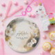 This unique paper plate is part of a sophisticated twentieth anniversary collection. The design features soft watercolor tones of beige and charcoal, highlighted with shimmering gold accents and delicate floral line art. Bold typography balances beautifully with graceful script details, creating a sophisticated and romantic look. Perfect for celebrating '20 years of love' in timeless style. Search ID1169 to see other products in this design set.