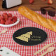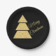 Add a touch of festive glamour to your table with this elegant golden Christmas tree paper plate. Ideal for Christmas dinners, parties, and gatherings with family and friends.