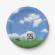 bola branca de golfe em relva verde com clube de golfe e fundo do céu para o 55.º aniversário Número na bola de golfe pode ser editado.