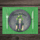 This paper plate is dark grey with a center greenish glow and a pretty Goth girl with green black hair with various tattoos. Customise the Happy Birthday text with the template.